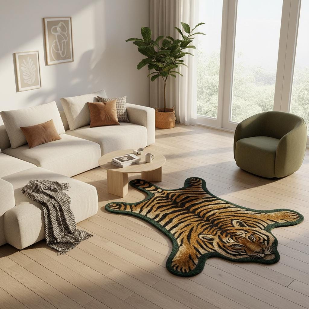 Whether you're styling a cozy modern home or gifting someone who loves unique décor, this tiger rug brings a touch of luxury, creativity, and warmth—making any space feel more lively, bold, and inviting.