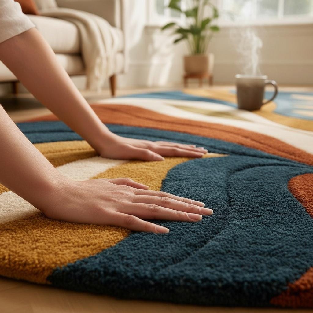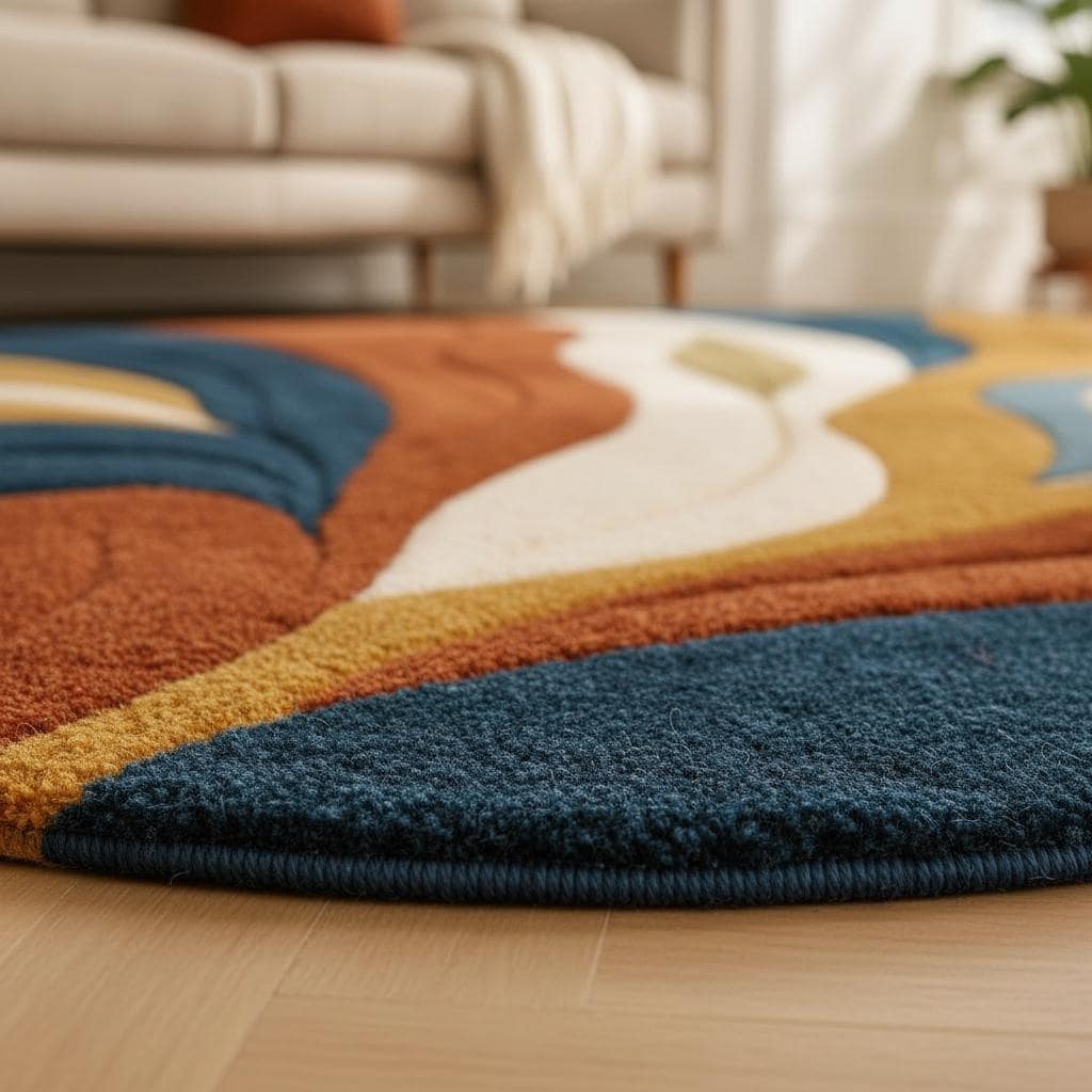 Crafted from premium wool fibers, this rug offers luxurious softness and exceptional durability. The plush, dense pile adds texture and warmth to living rooms, bedrooms, sunlit corners, and creative studio spaces. Its rich earthy palette looks beautiful in natural daylight, instantly enhancing any room with depth and modern character.