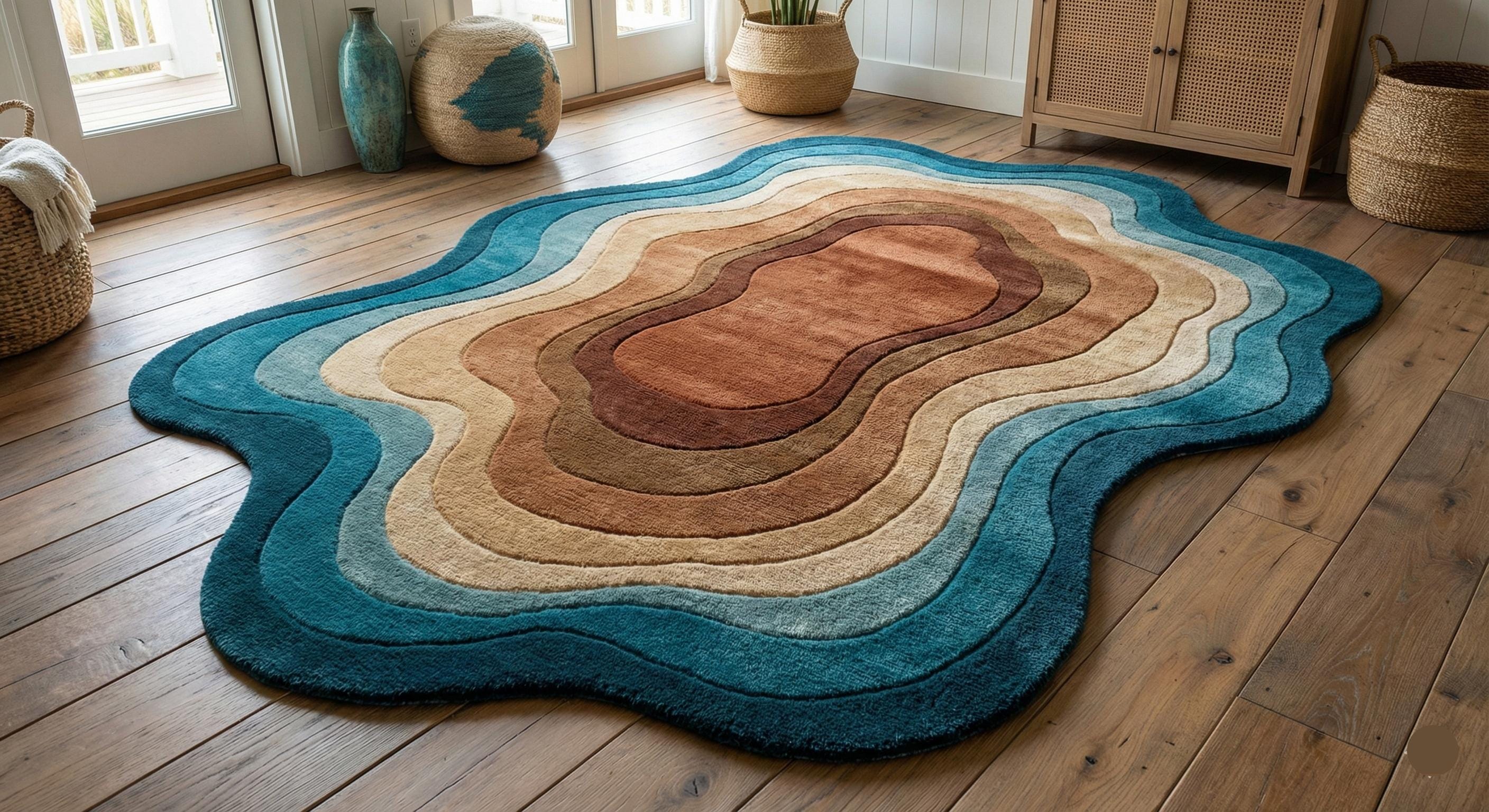 Modern Geometric Circle Rug – Mid-Century Inspired Hand-Tufted Wool Carpet for Vibrant Living Spaces