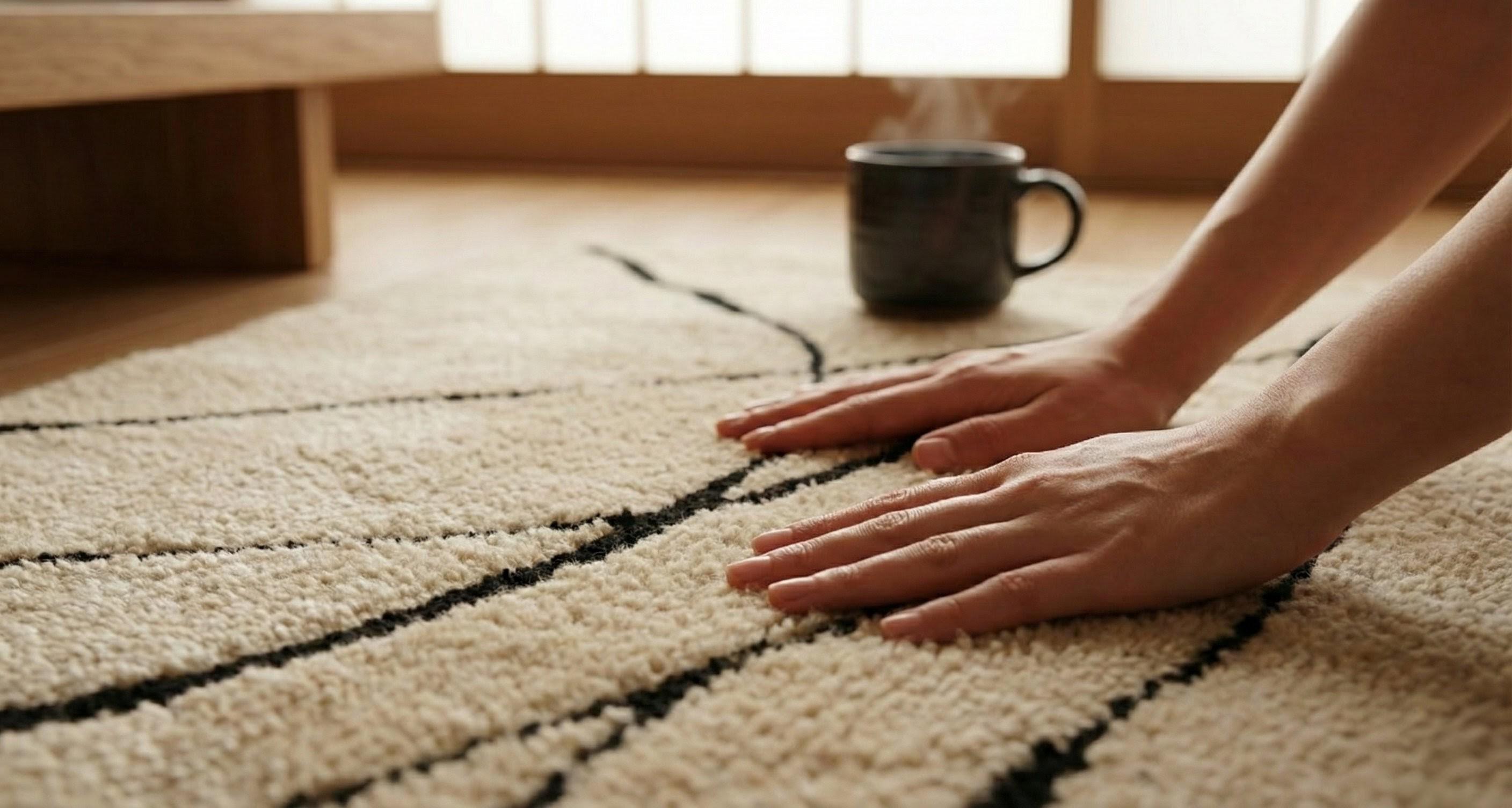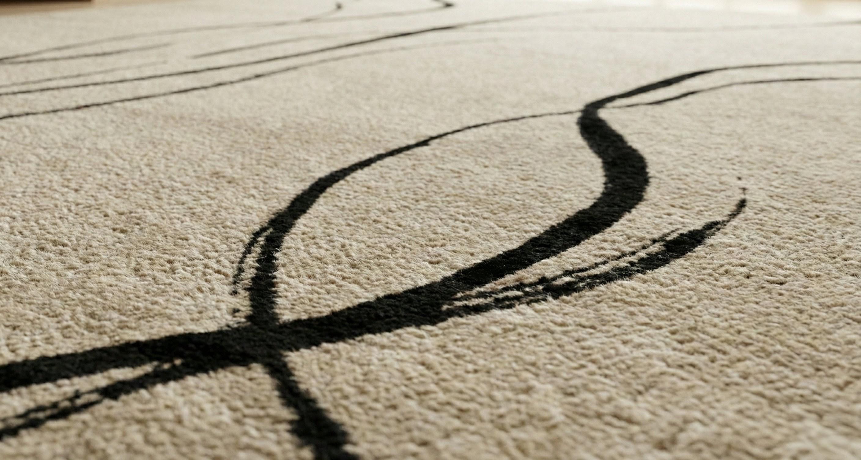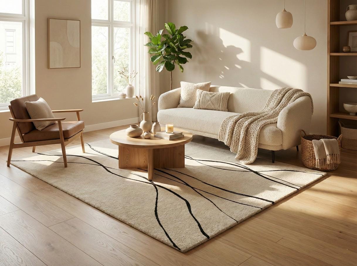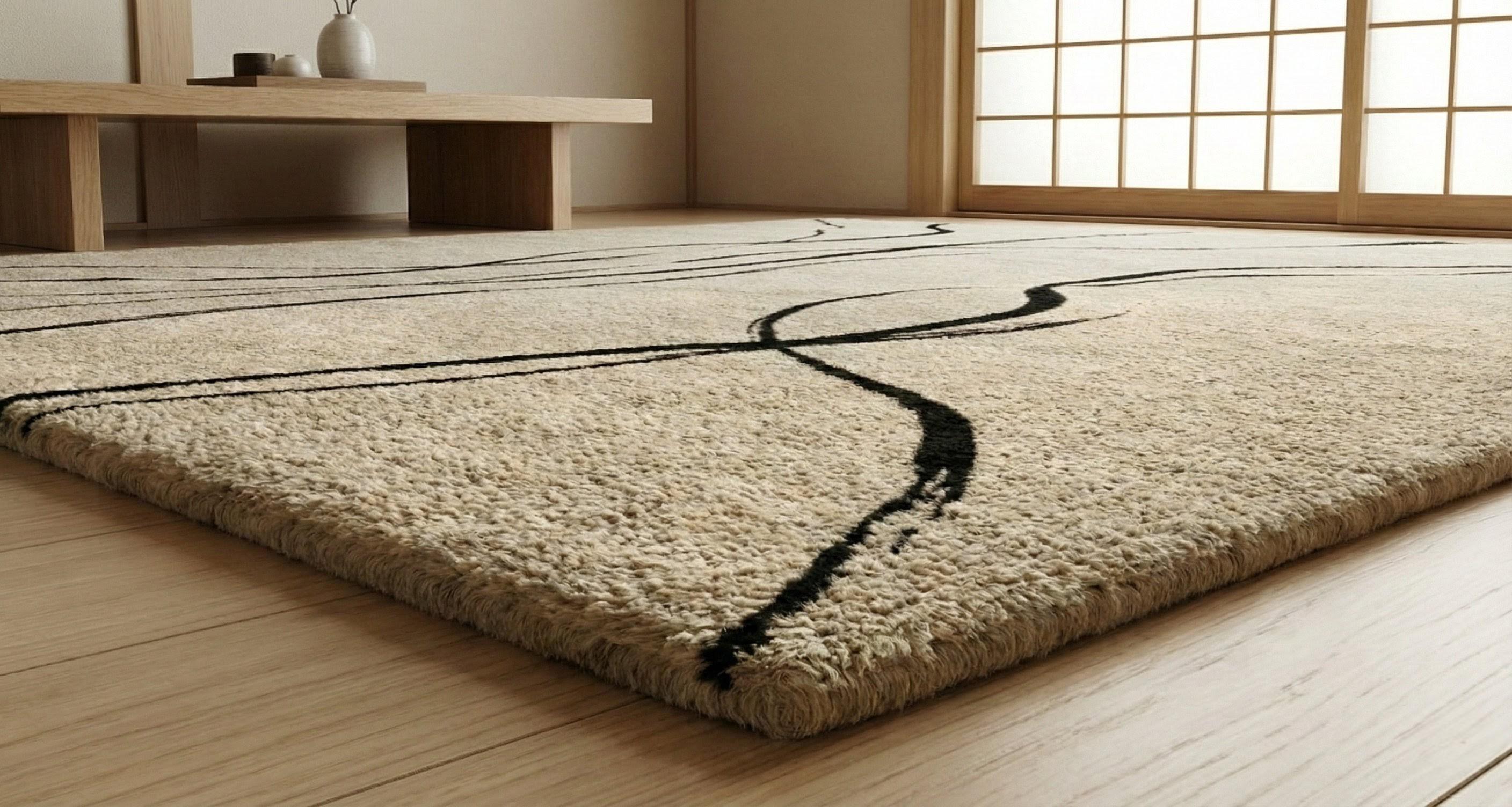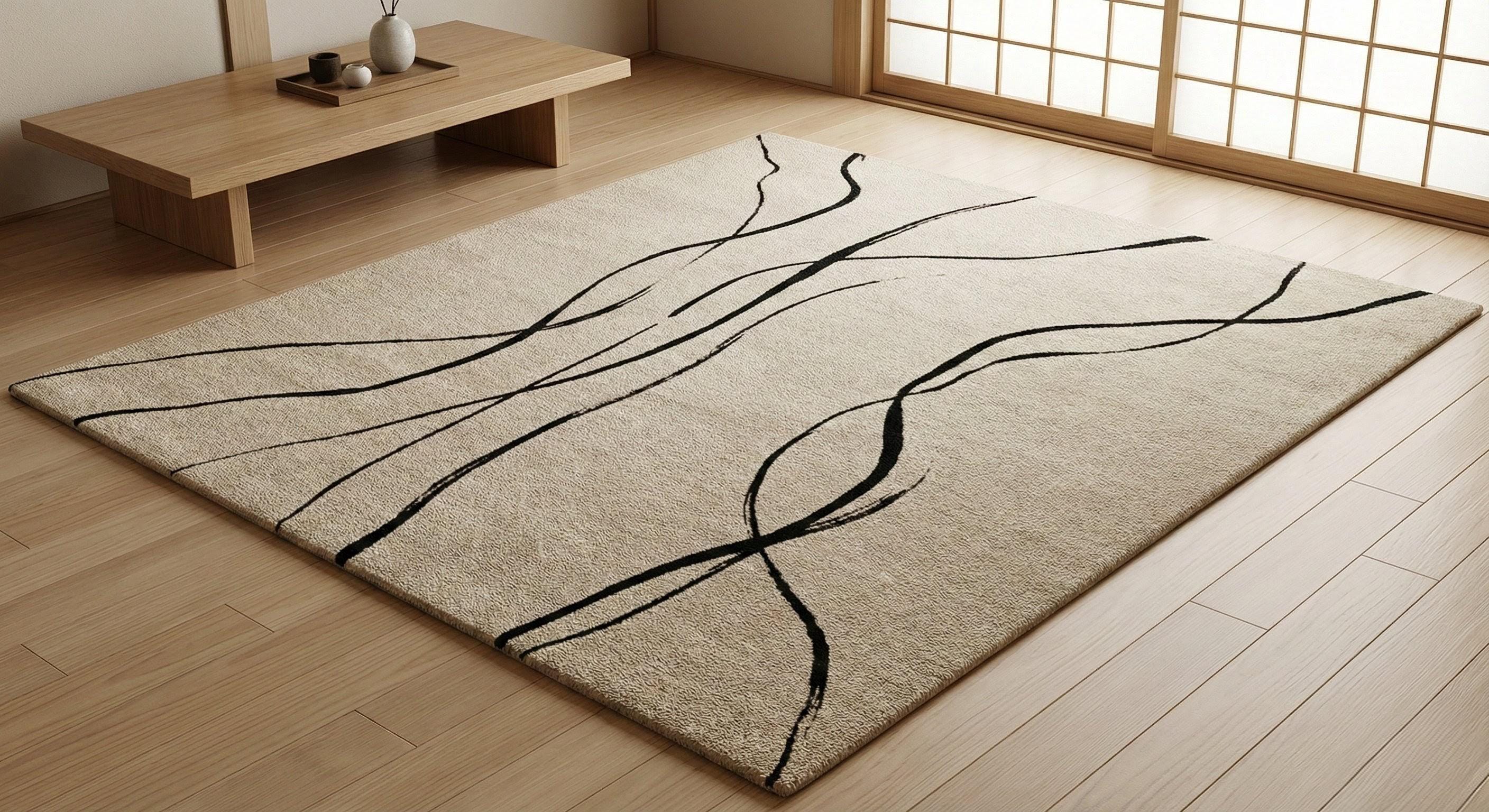 Minimalist Abstract Line Art Rug – Hand-Tufted Neutral Beige Carpet for Modern, Japandi & Zen Interiors