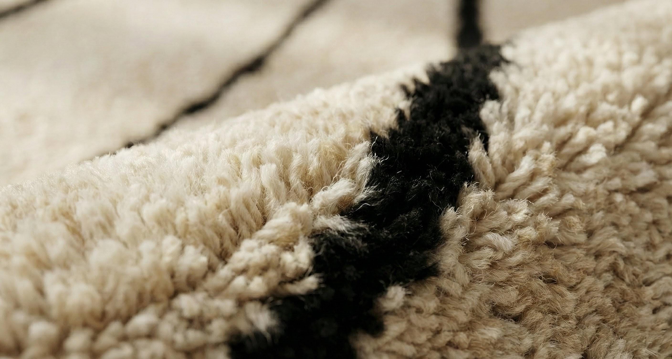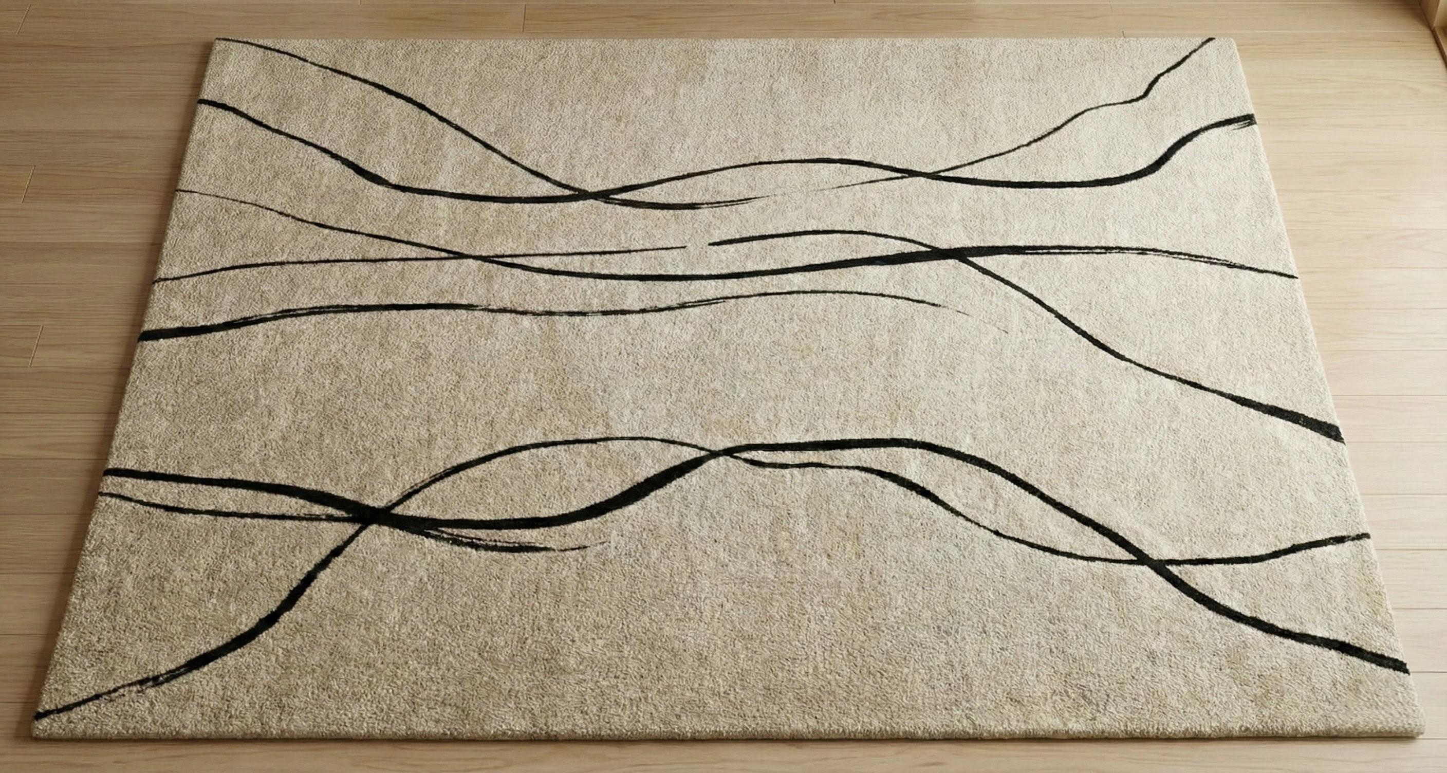 Hand-tufted with premium wool, the smooth beige background creates a calm, natural foundation—while the free-flowing black lines bring artistic movement and a gallery-like aesthetic. The clean, modern design blends effortlessly into living rooms, bedrooms, meditation spaces, and minimalist homes.