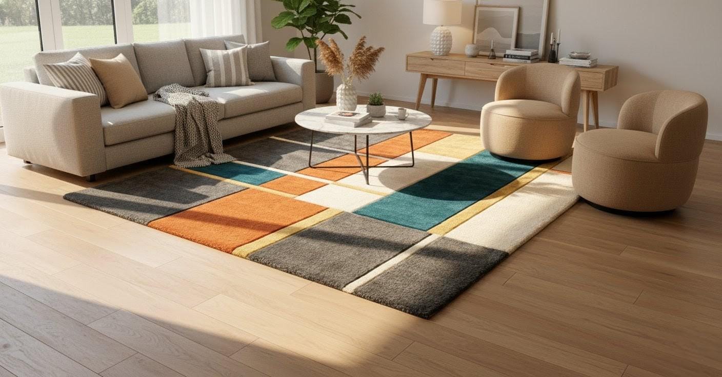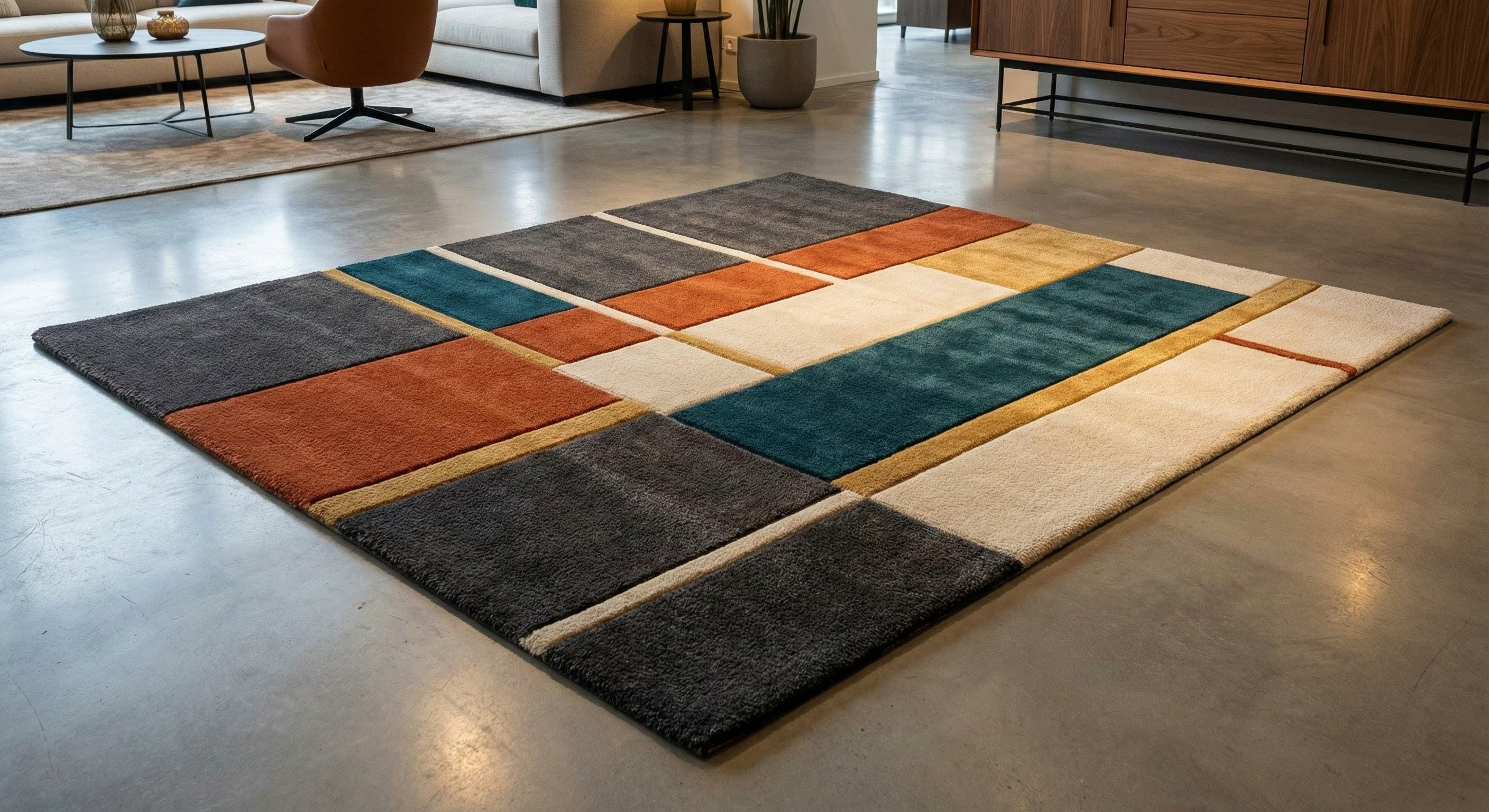 Modern Geometric Colorblock Rug – Hand-Tufted Wool Carpet for Contemporary, Mid-Century & Modern Homes