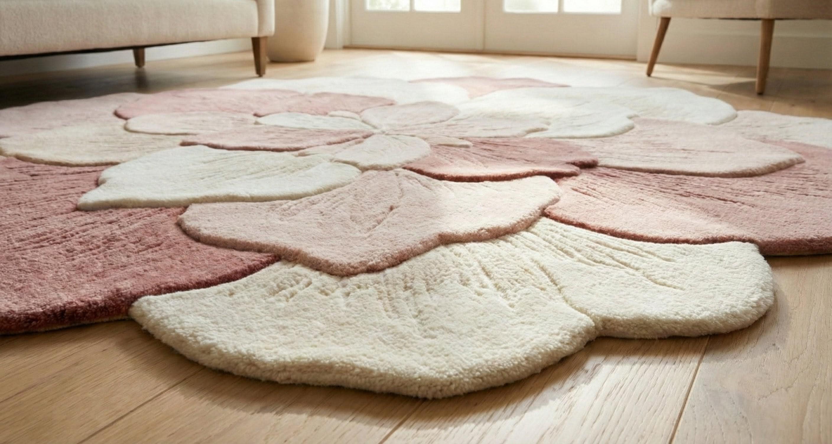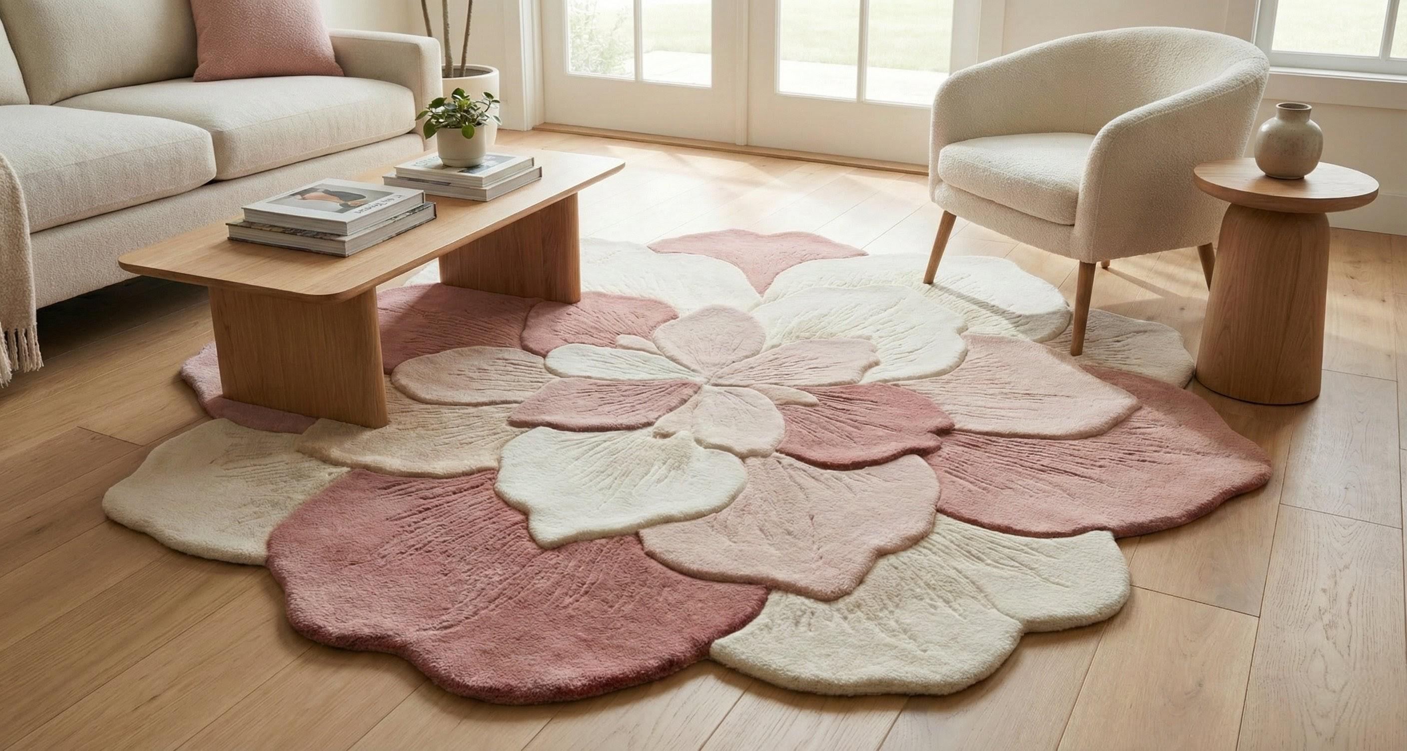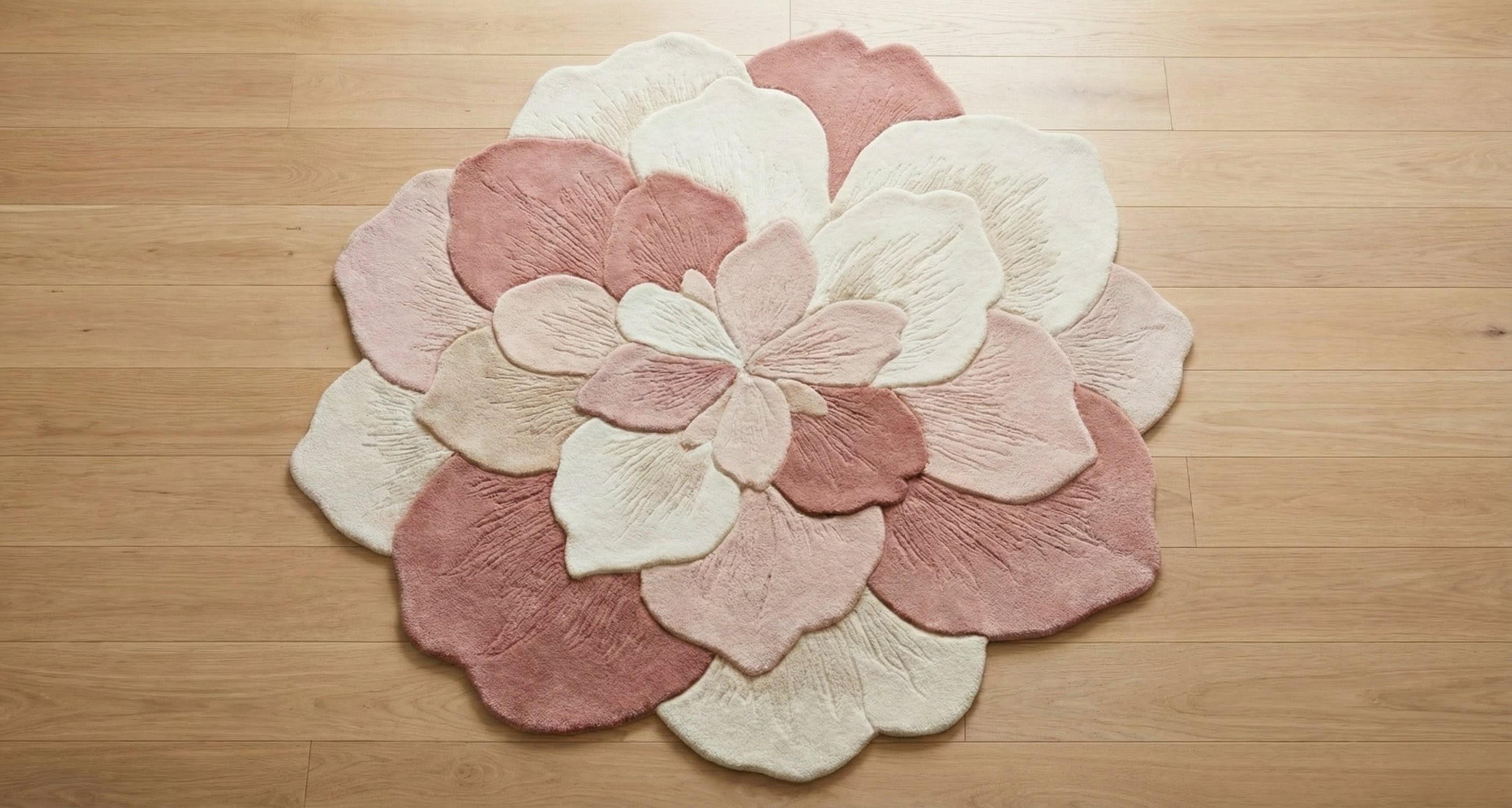 Unique freeform floral shape — far more eye-catching than standard rugs