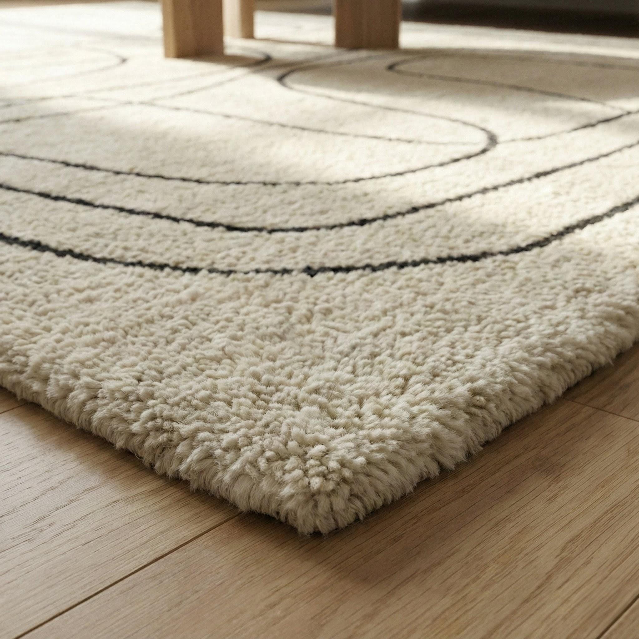 🌿 Handmade Rectangular Wool Rug – Minimalist Abstract Line Area Carpet for Modern Living Spaces