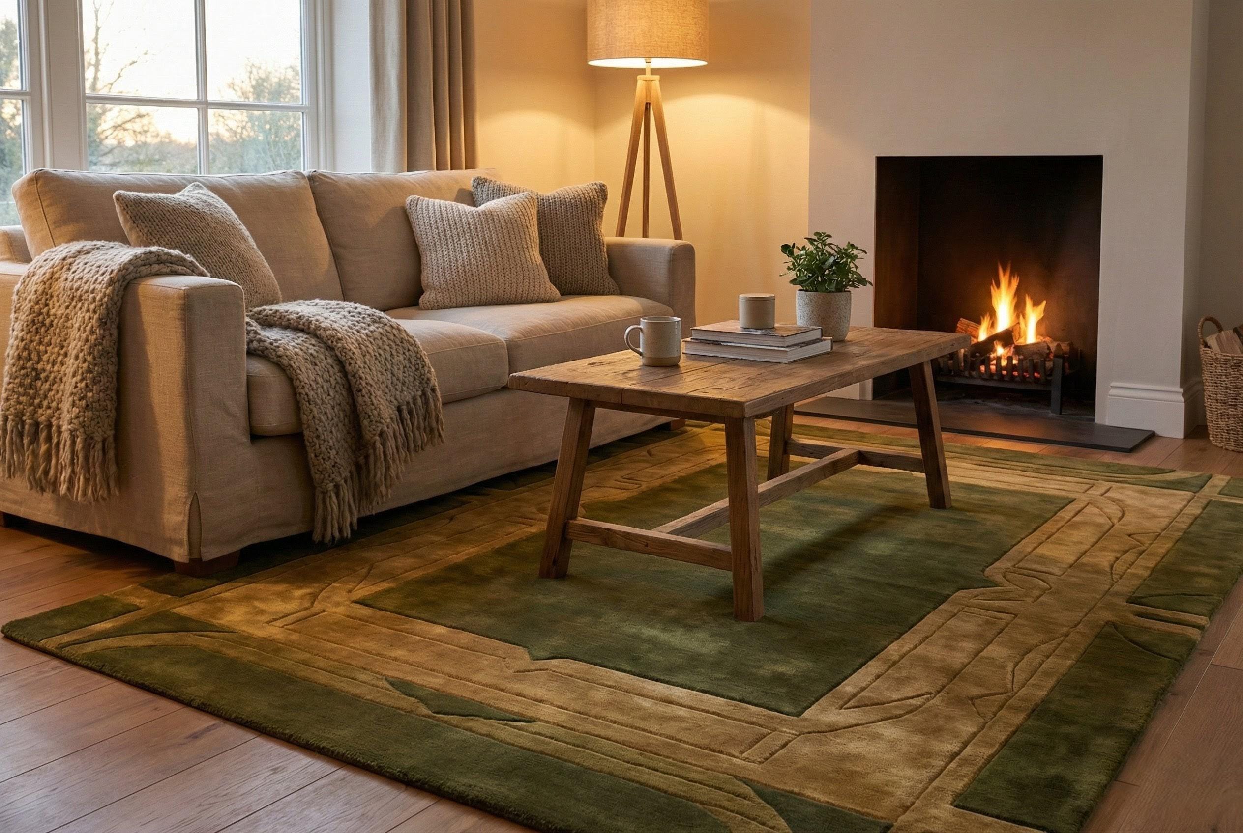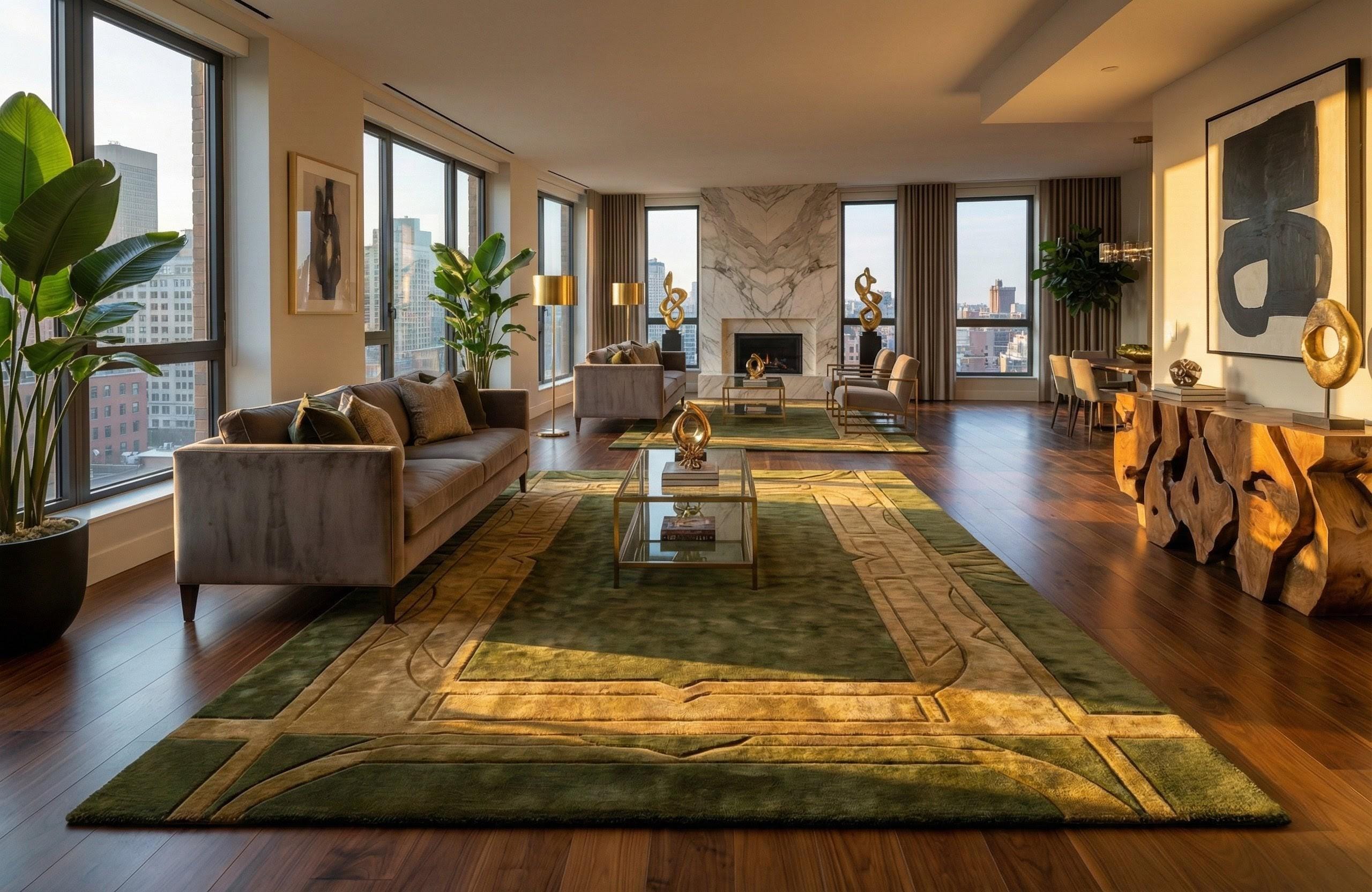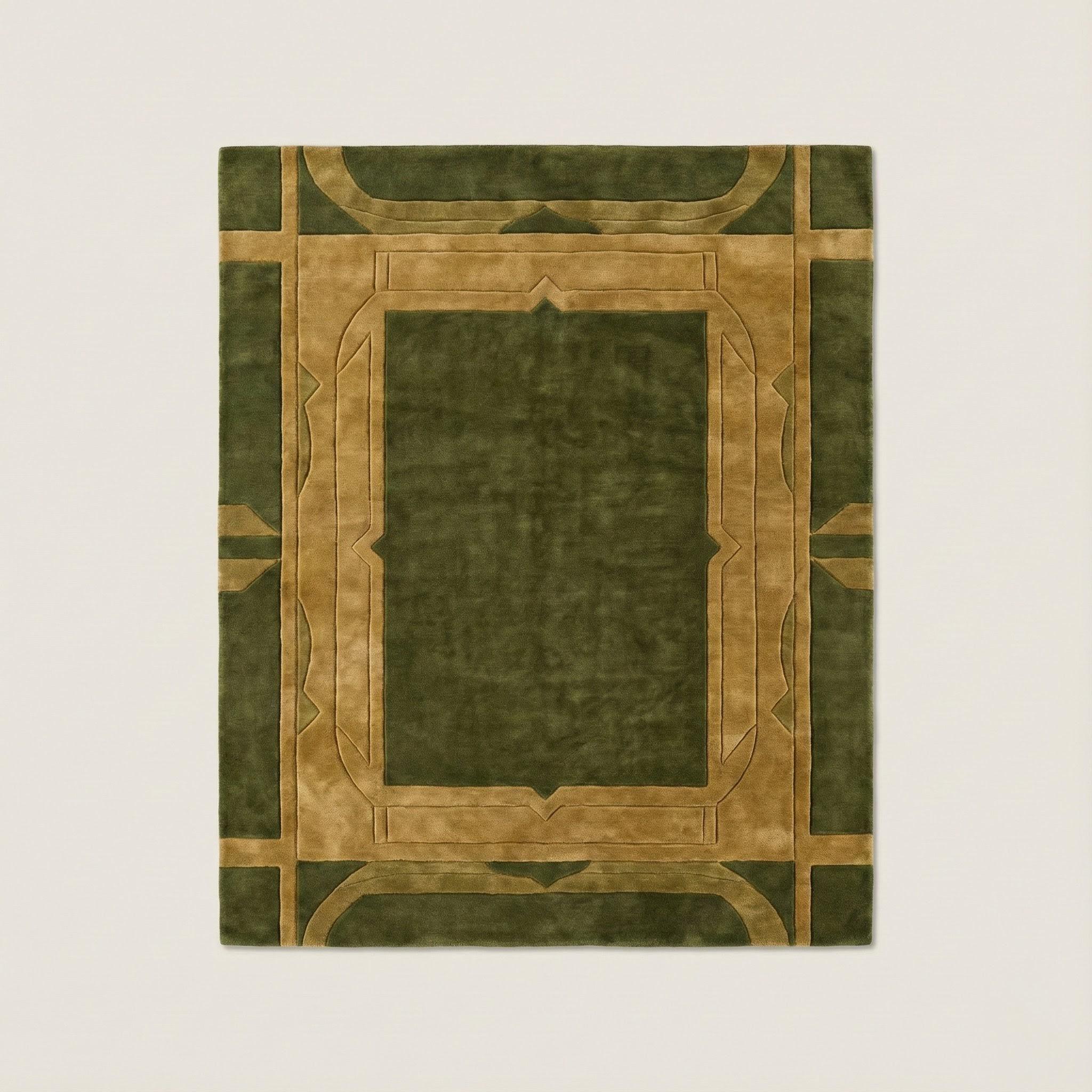 ✔ Elegant Art Deco–inspired geometric pattern ✔ Rich green & olive color palette for luxury interiors ✔ Hand-tufted from premium New Zealand wool ✔ Plush, dense pile with subtle high-low texture ✔ Perfect balance of modern design & timeless elegance