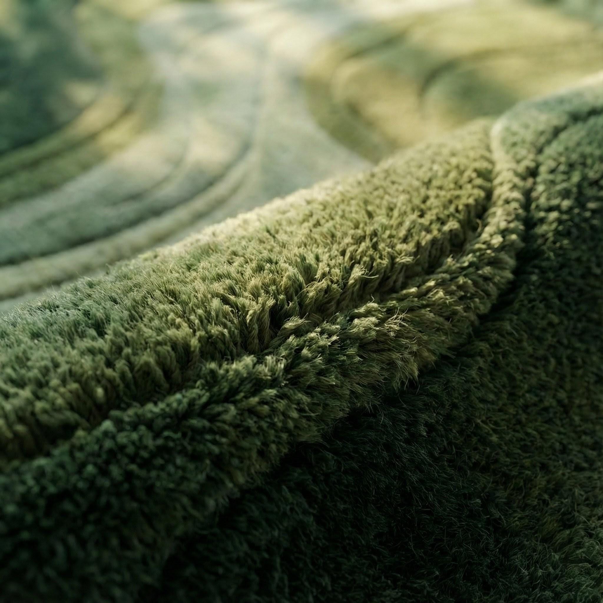 • Elegant green wave pattern inspired by natural landscapes • Sculpted high-low texture that adds depth and movement • Organic abstract design with a calm, modern aesthetic • Rich green tones—from deep forest to soft sage • Plush, premium wool feel—soft, dense & luxurious underfoot • Perfect balance of bold design and soothing minimalism