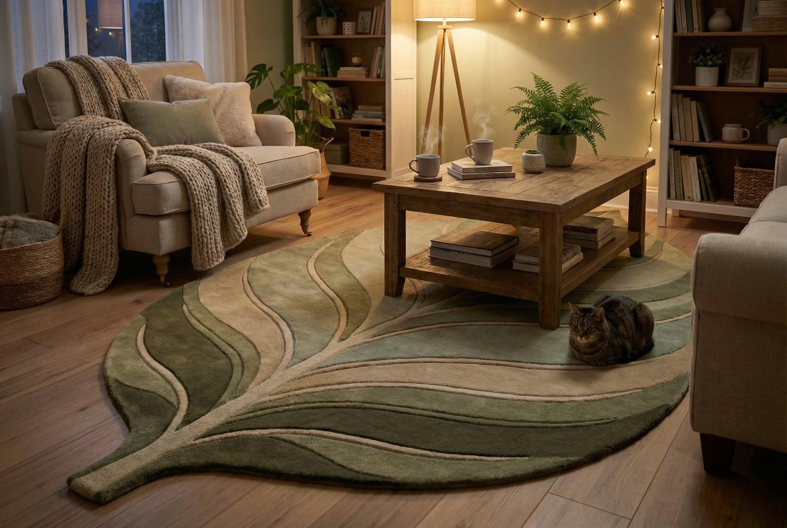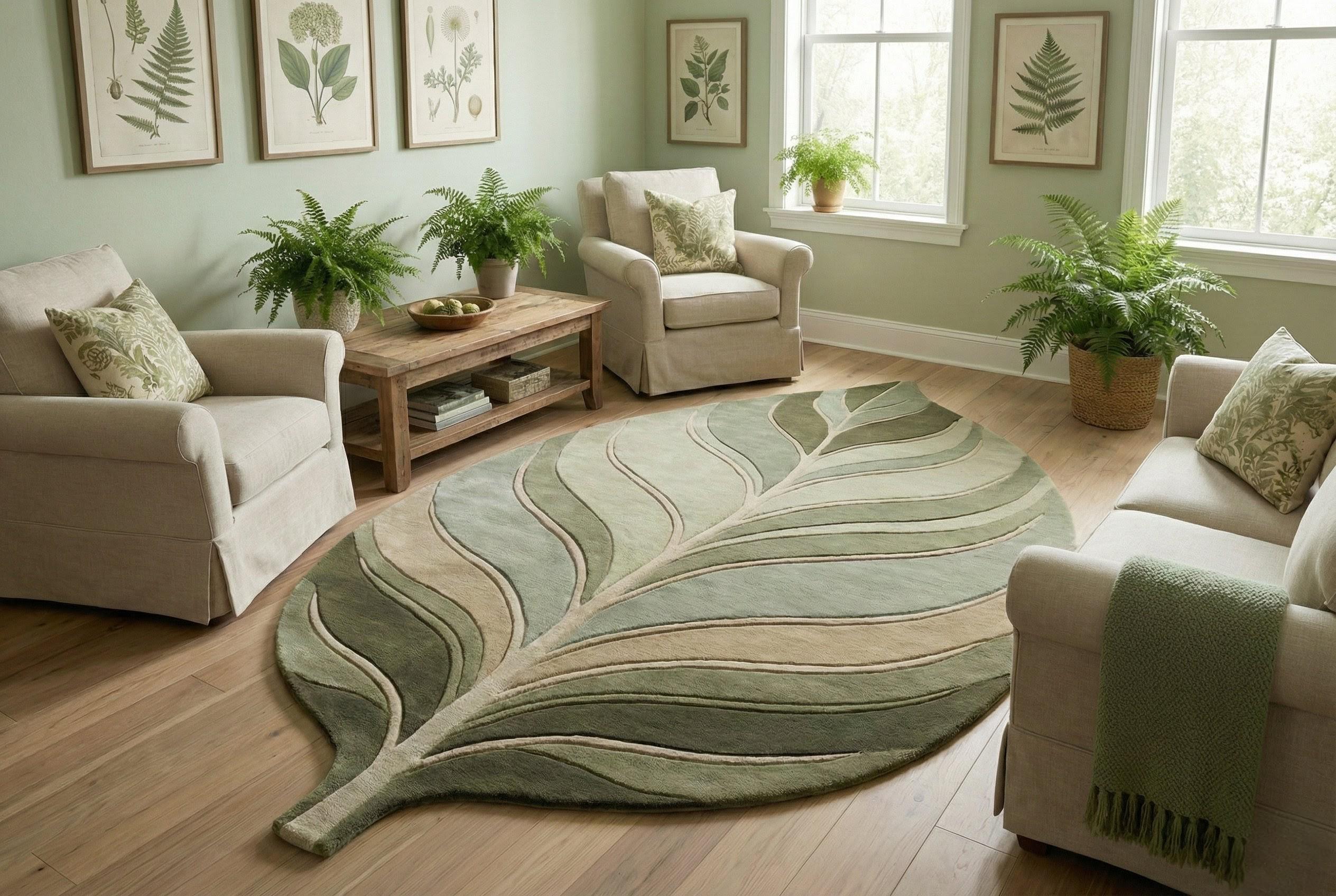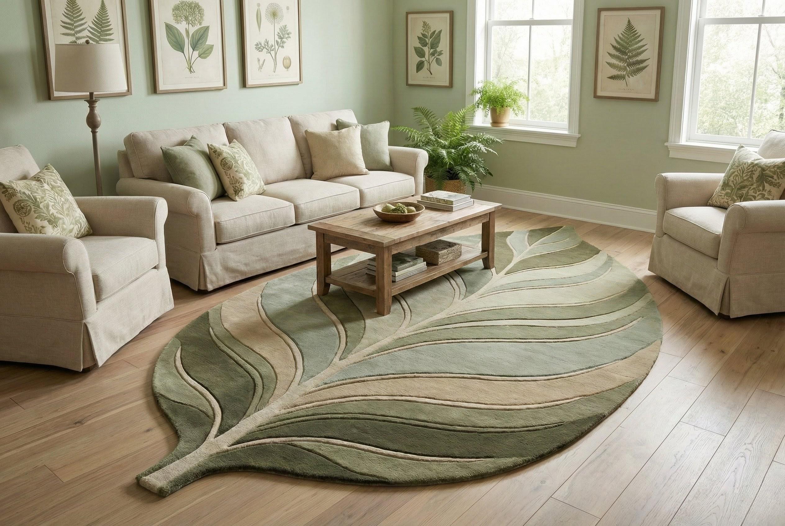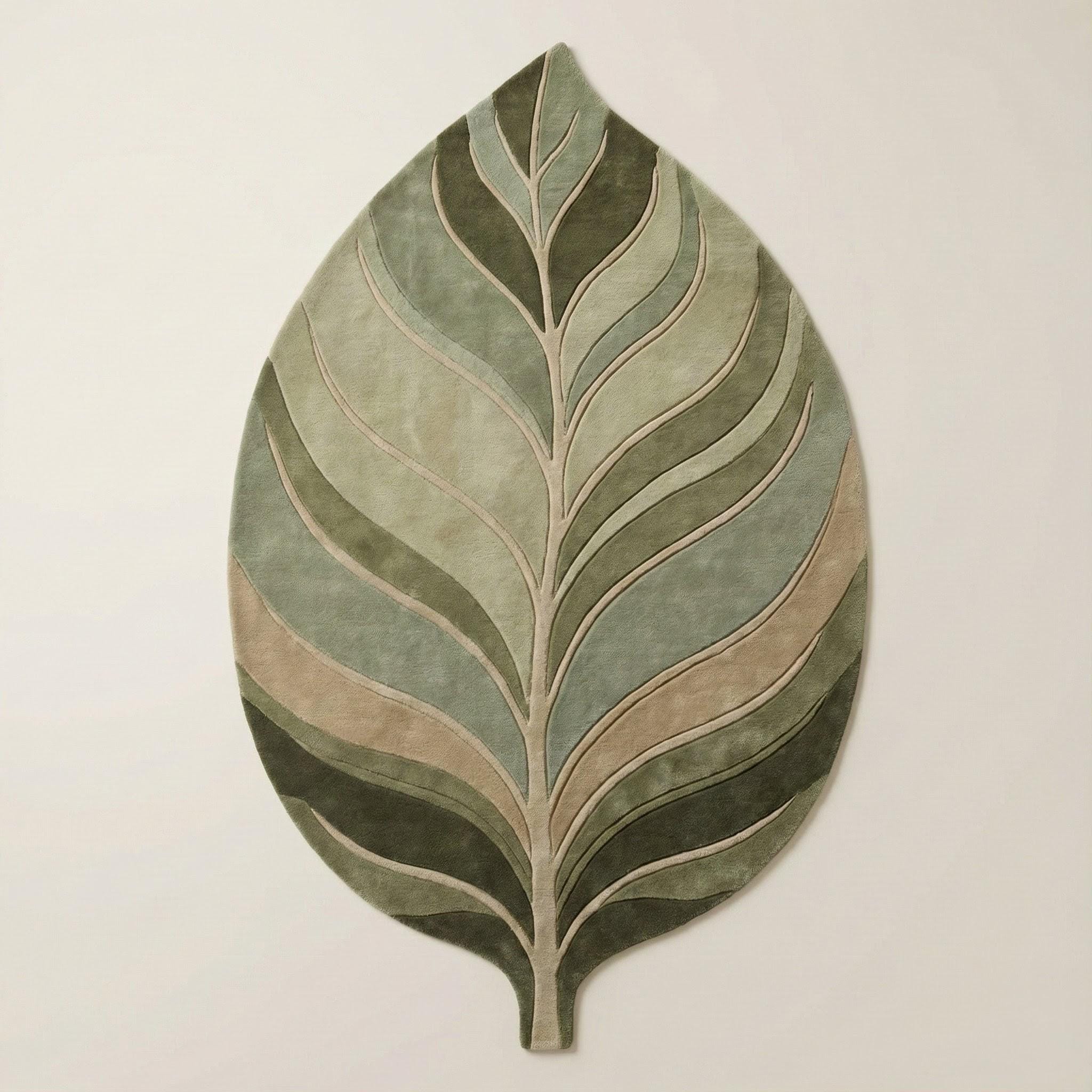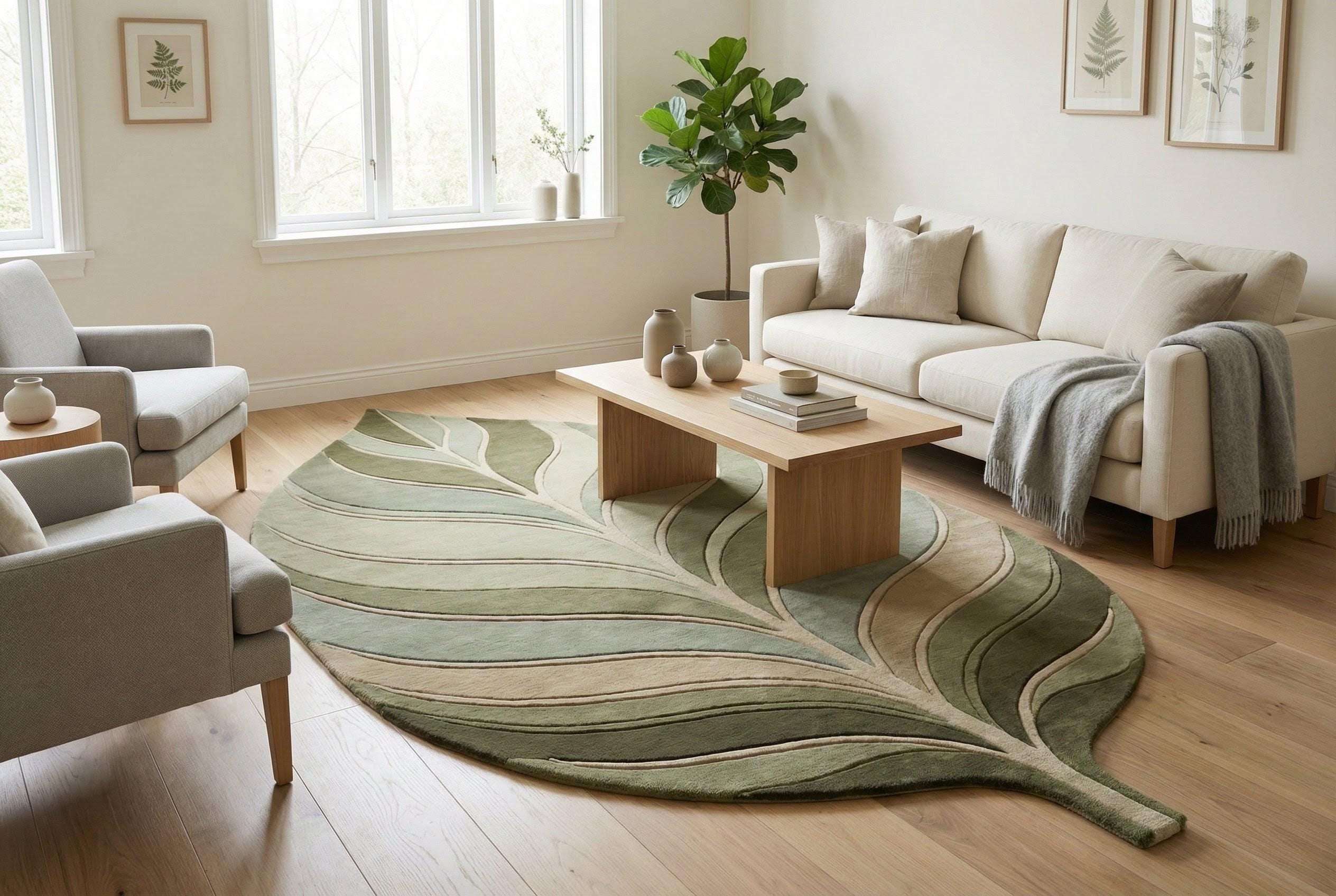 Leaf Shaped Botanical Area Rug – Modern Nature Inspired Hand-Tufted Wool Carpet