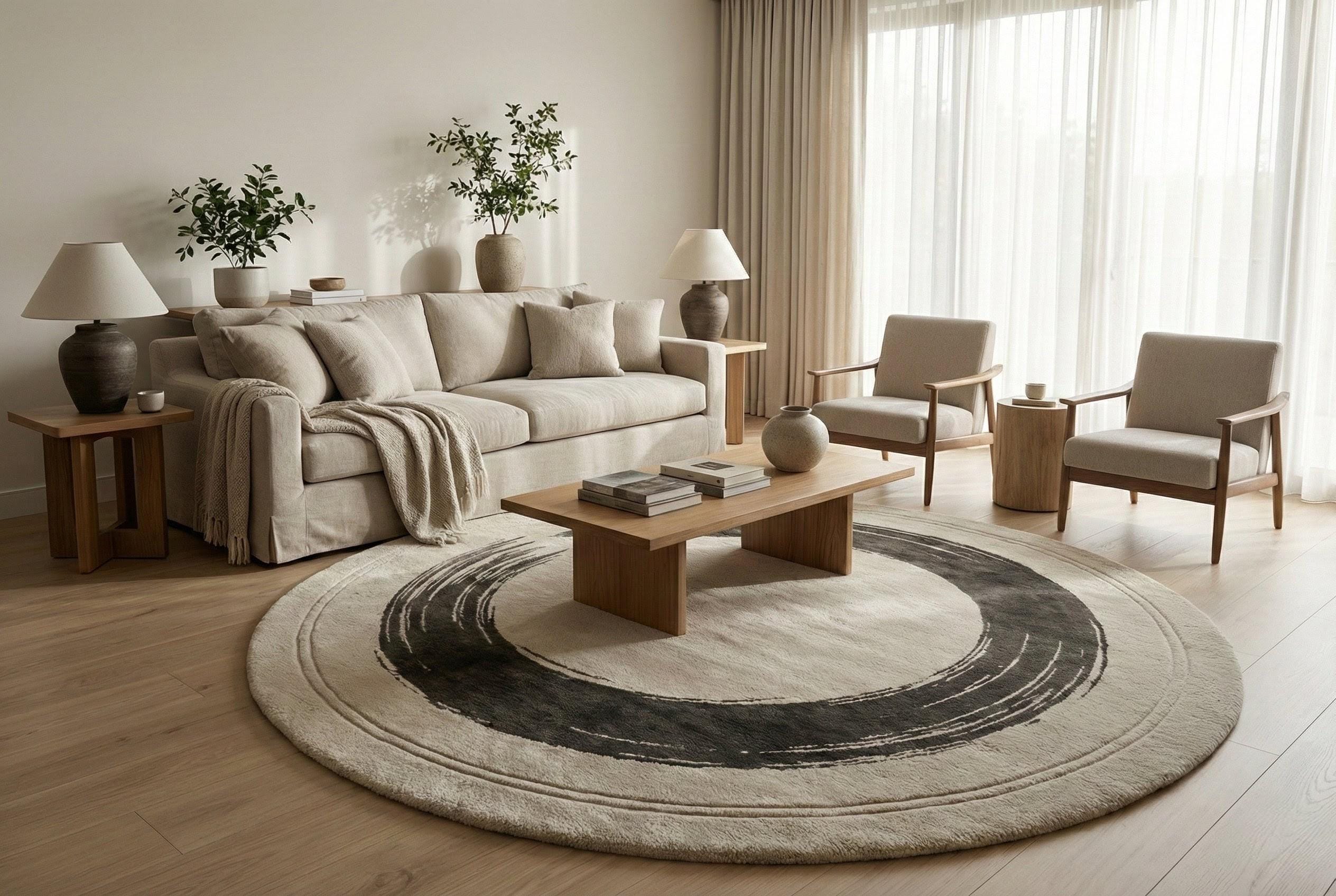 Handcrafted with premium-quality materials, this plush round rug offers a luxurious underfoot feel while instantly becoming the focal point of your space. The flowing wave design adds movement and balance, making it ideal for living rooms, bedrooms, reading corners, creative studios, and thoughtfully styled homes.