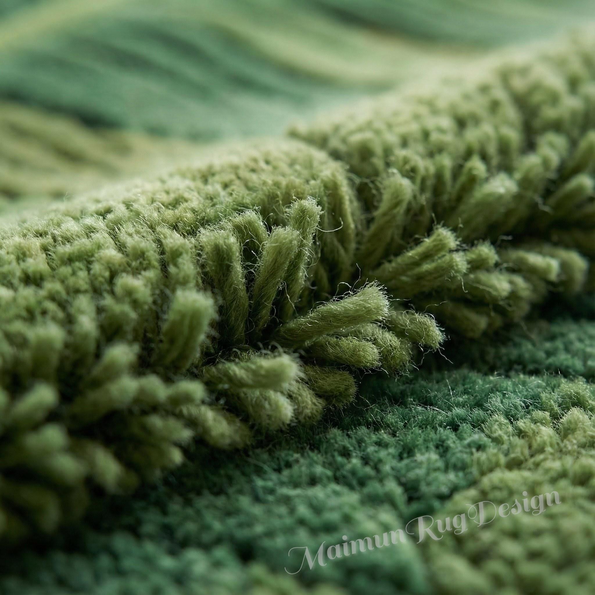 The rich botanical green color palette flows seamlessly from deep emerald to olive and moss tones, creating a calm yet eye-catching tropical modern aesthetic. The sculpted high-low carving enhances the organic design, giving the rug a refined, three-dimensional look that feels both artistic and luxurious.