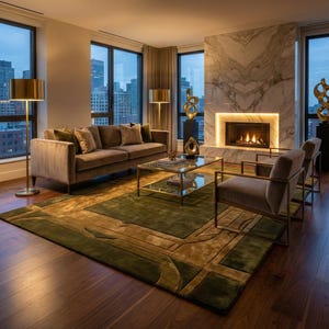 This rug pairs beautifully with neutral sofas, minimalist furniture, natural wood tones, and modern décor styles. Whether placed under a coffee table or used as the centerpiece of the room, it elevates the entire interior with a gallery-worthy look.