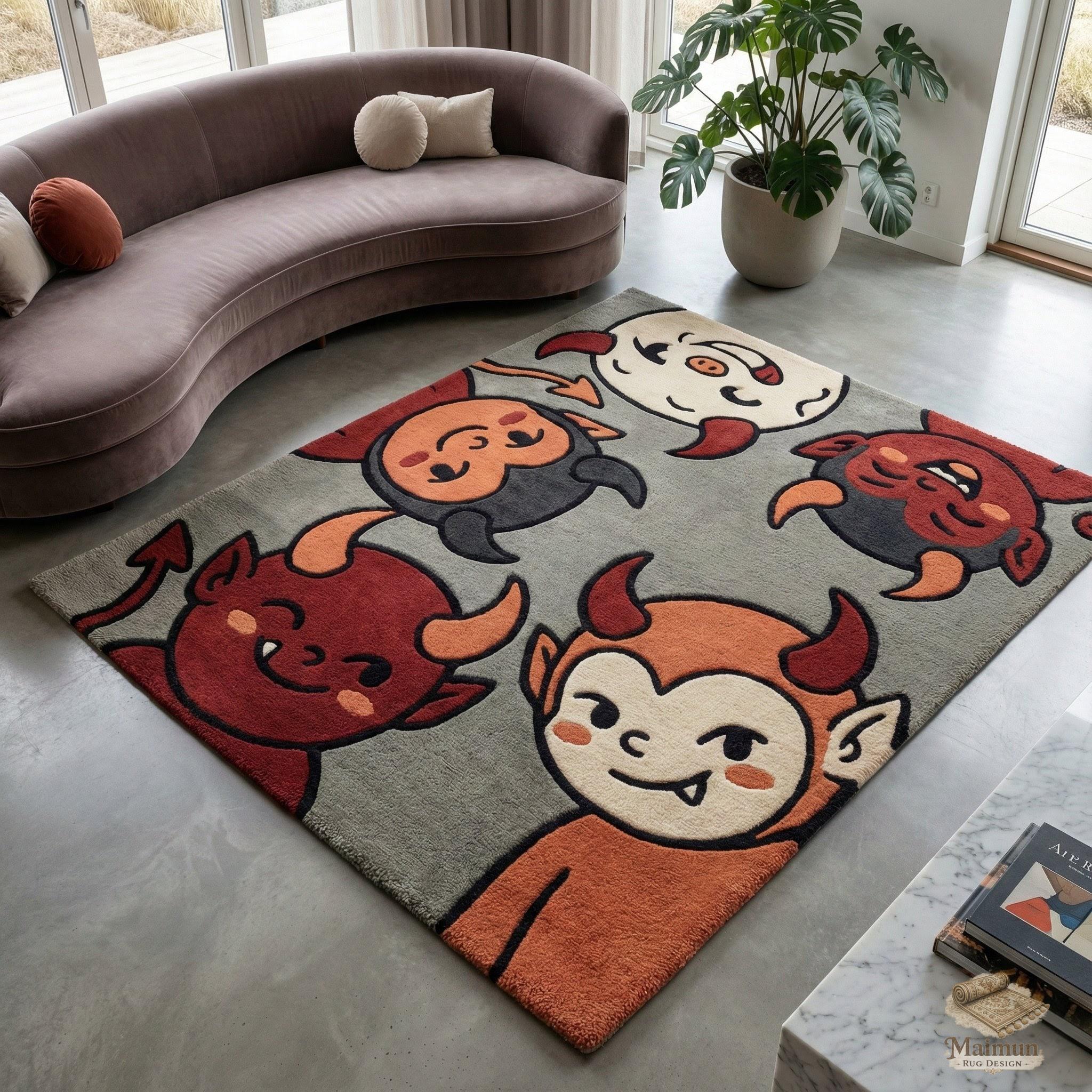 Hand-tufted with care, this rug is soft underfoot yet durable enough for everyday use. The friendly demon expressions give it a light-hearted, kawaii feel—perfect for those who love unique décor without anything scary or dark.