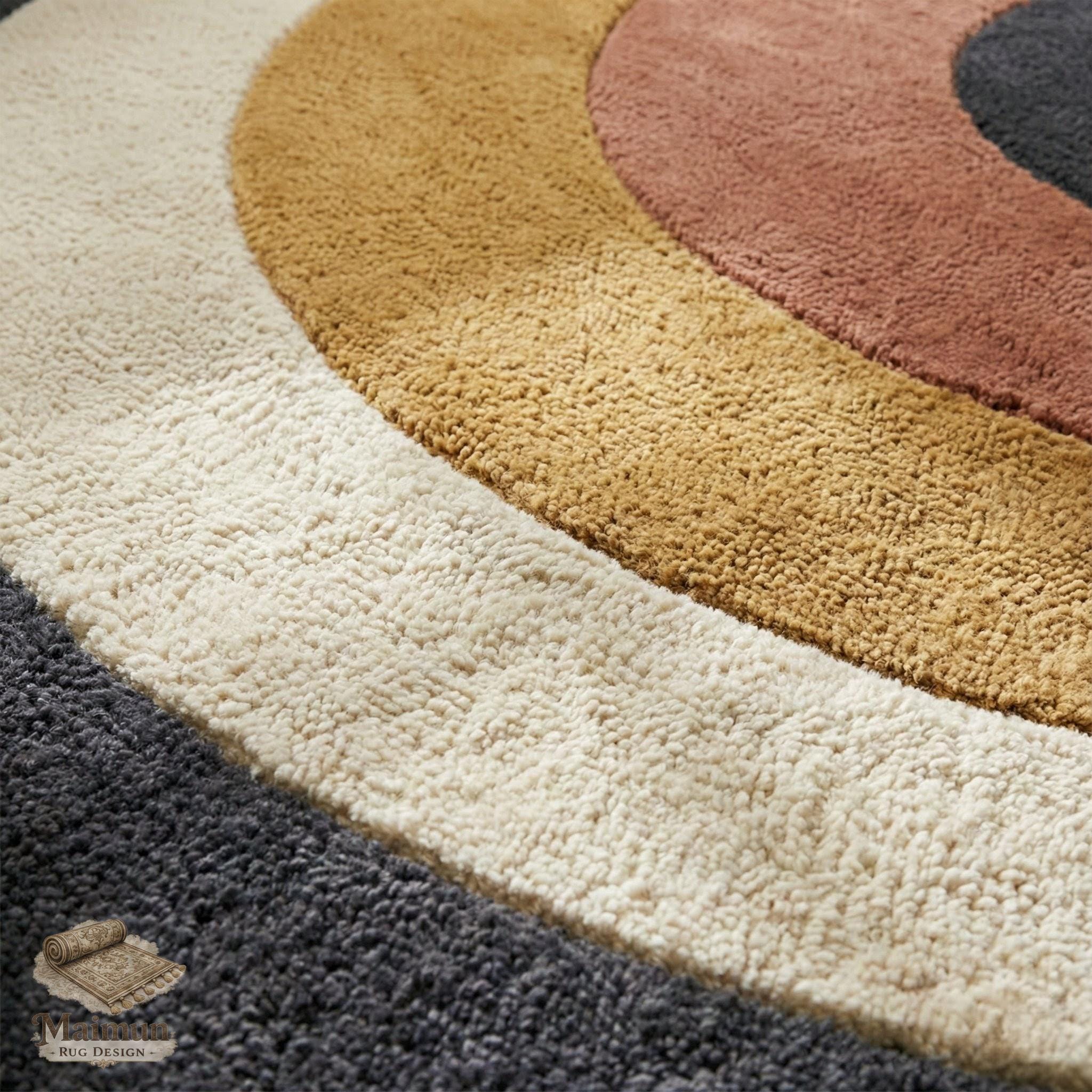 Carefully handcrafted using premium quality wool, this rug offers a plush, comfortable feel underfoot along with excellent durability for everyday use. The clean circular geometry and balanced color transitions give the rug a refined, modern look—ideal for minimalist, Japandi, mid-century, or modern homes.