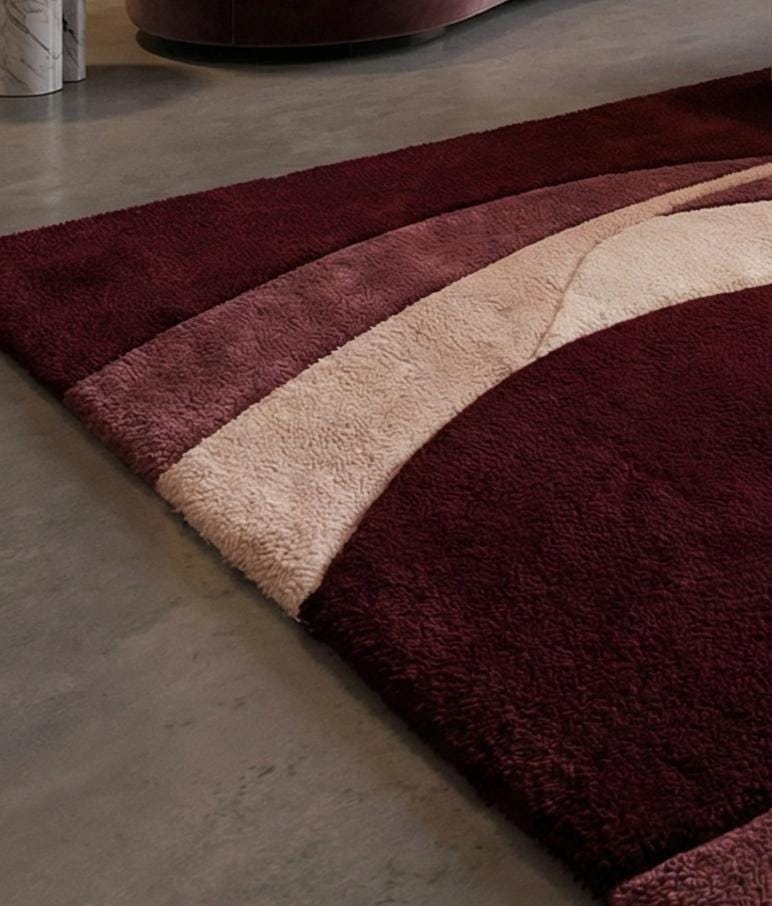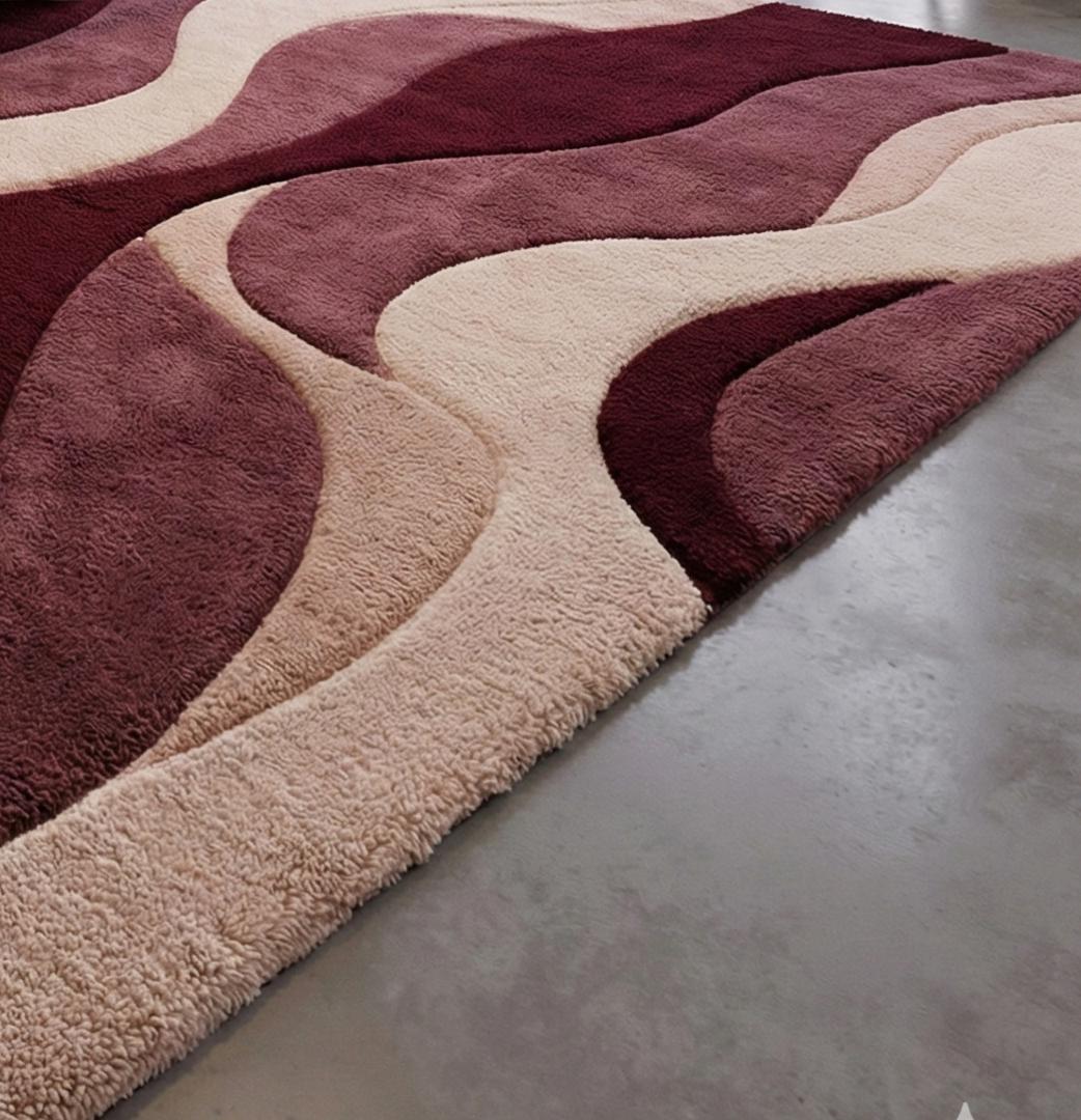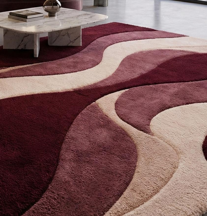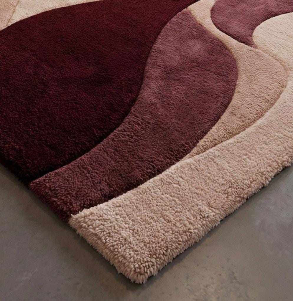 This luxury burgundy wave rug is hand tufted using premium quality wool, designed to bring warmth, depth, and elegance to modern interiors. Inspired by flowing organic wave patterns, this rug creates a rich and sophisticated focal point while offering a plush, comfortable feel underfoot.