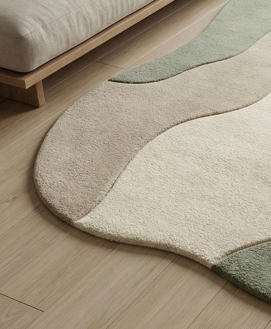 ✔ Material: 100% Premium Wool ✔ Technique: Hand Tufted ✔ Pile Height: Medium, soft & plush ✔ Design: Organic wave pattern ✔ Shape: Irregular / Freeform ✔ Style: Japandi, Minimal, Scandinavian ✔ Use: Living room, bedroom, lounge, meditation space ✔ Origin: Handmade in Bhadohi, India