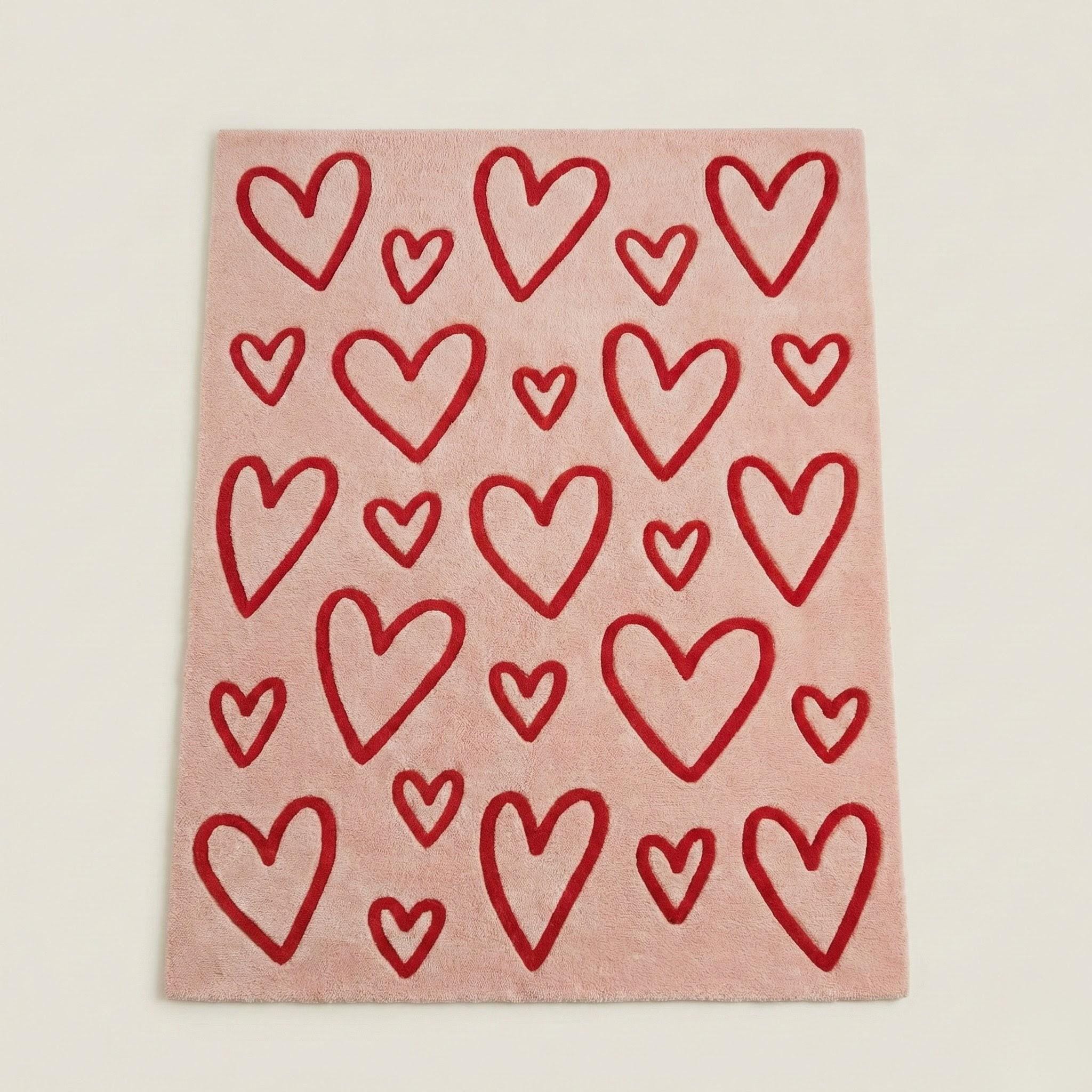 This charming hand tufted heart rug features a playful all-over heart pattern in bold red outlines on a soft blush pink base. Designed to spread warmth, love, and joy, this rug is perfect for Valentine’s Day décor, romantic bedrooms, and cozy living spaces.