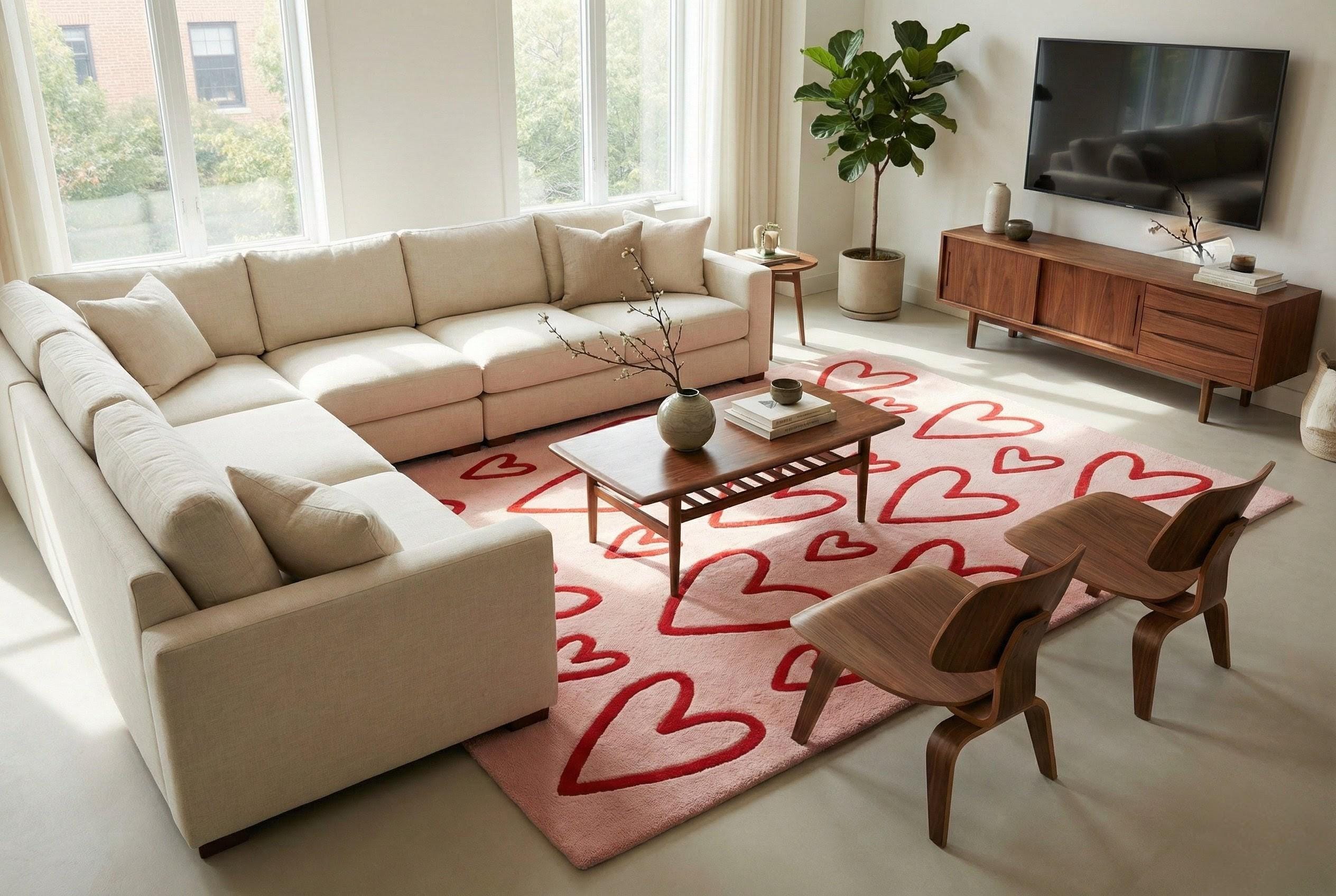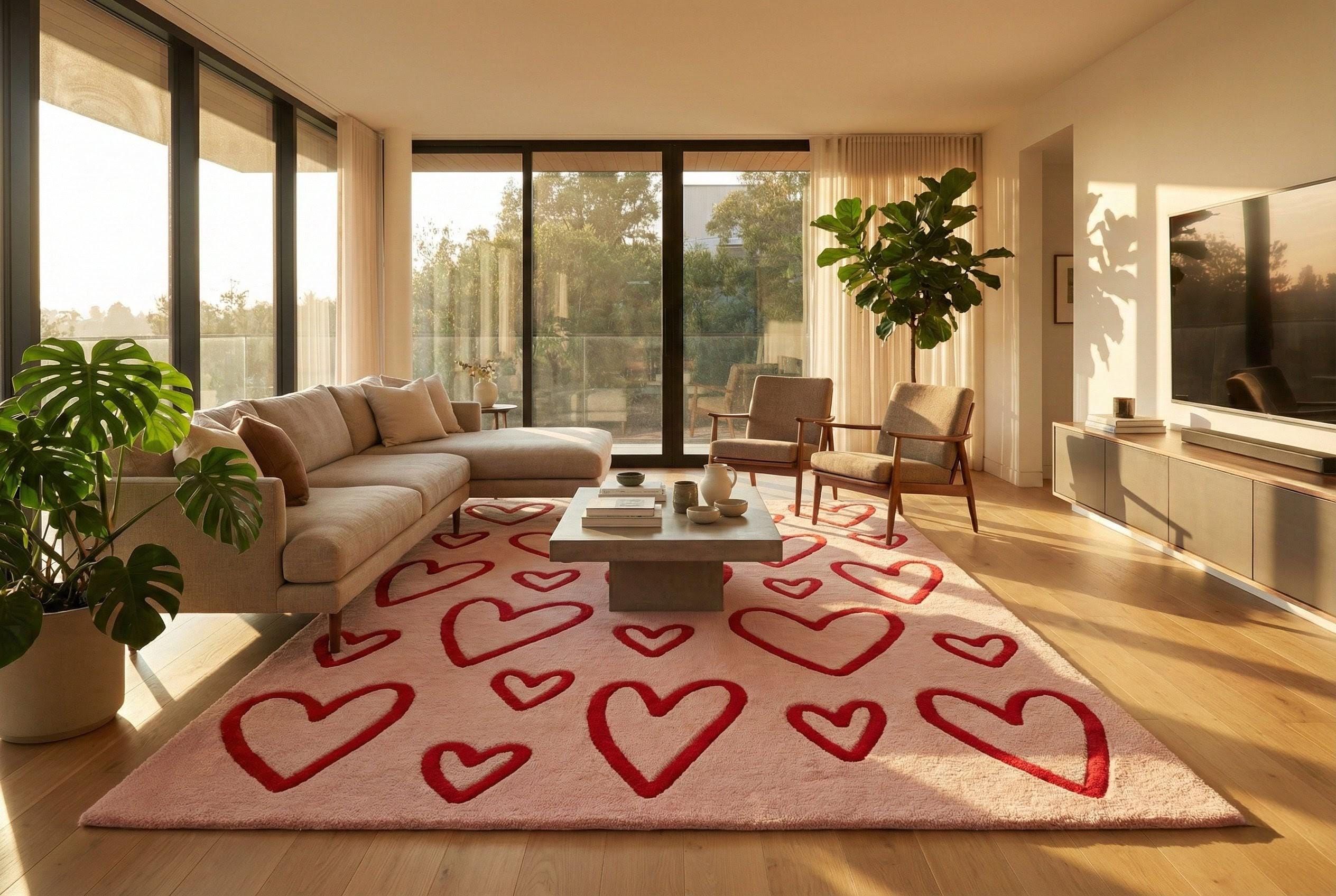 Our Valentine & love-themed rugs are designed to express emotions through texture, color, and thoughtful design.