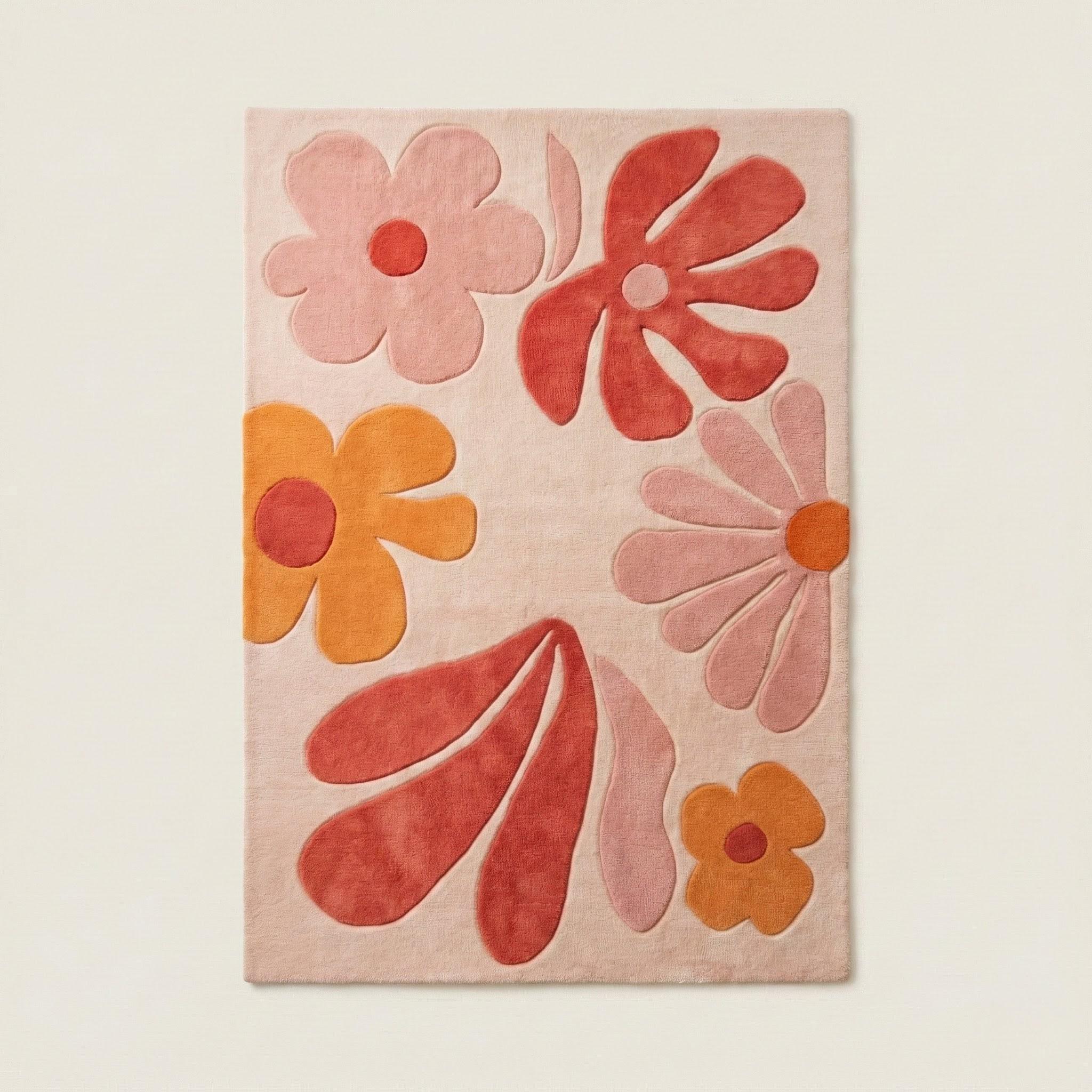 ✨ The Design Philosophy Step back into a more colorful era, reimagined for the modern luxury home. This design is an ode to the bold optimism of 1970s retro aesthetics and Mid-Century Modern graphic design. We’ve taken the classic floral motif and exploded it into oversized, sprawling blooms that feel organic and full of movement. The color palette is a warm embrace of sunset hues—sumptuous corals, dusty rose pinks, burnt oranges, and deep terracottas—all balanced against a creamy, blush undertone. It is maximalist yet sophisticated, designed to bring instant joy and a high-design "wow factor" to any space.