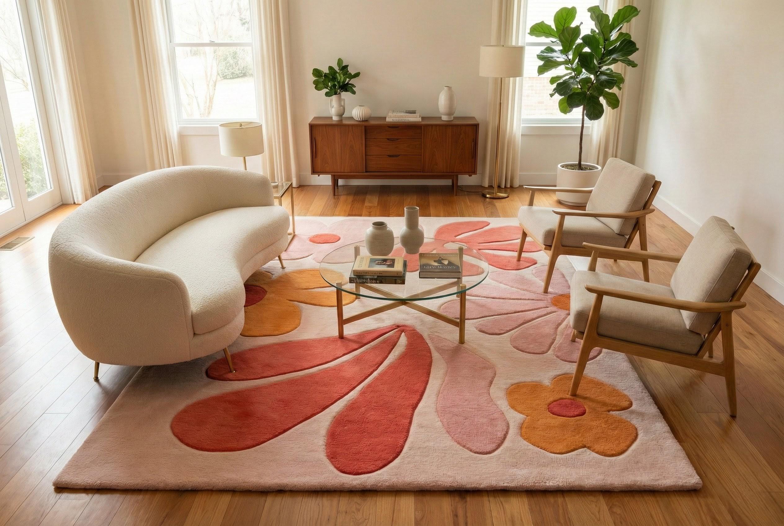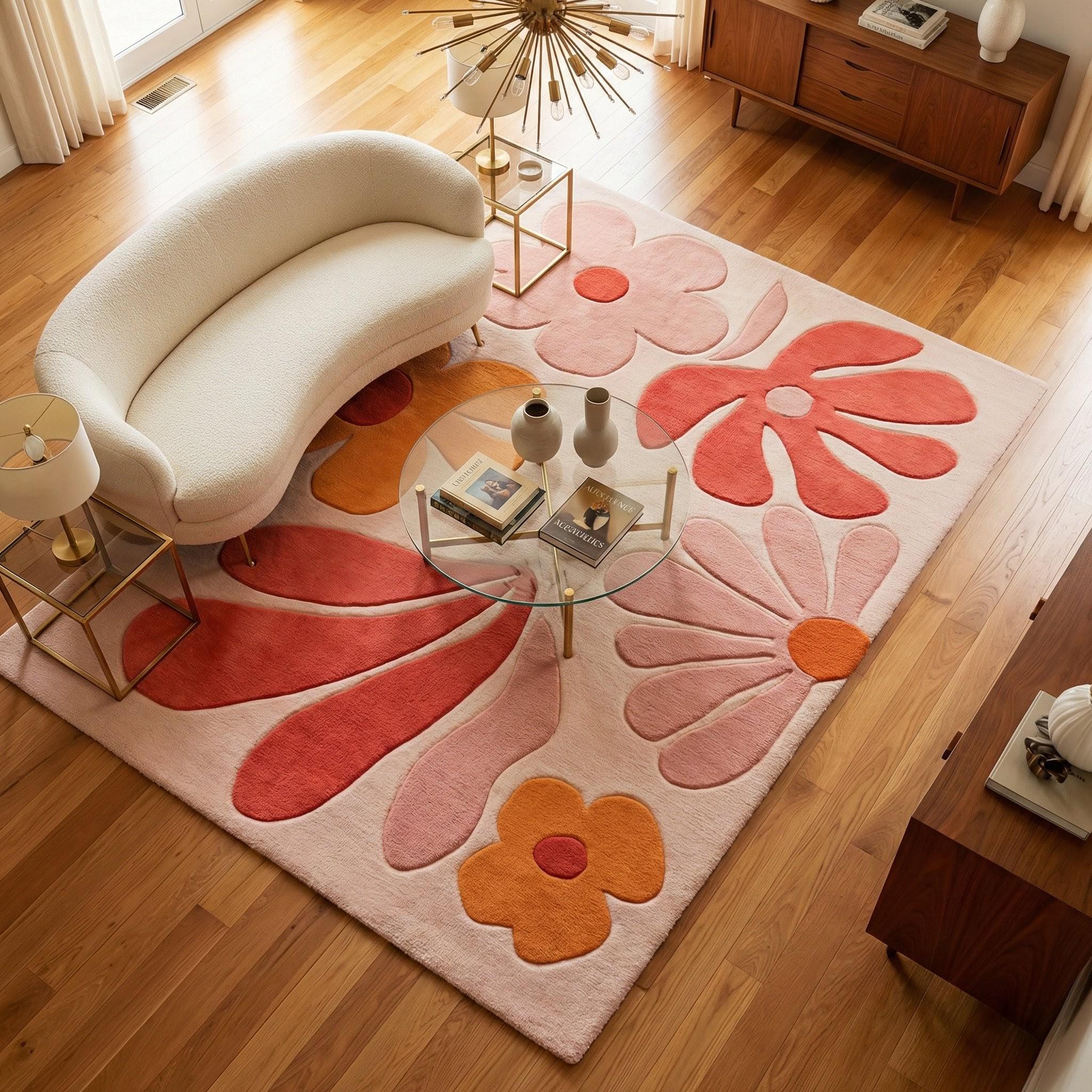 🏡 Styling Your Space This rug is a born conversation starter and should be the anchor of your room. It thrives in a Mid-Century Modern setting, pairing beautifully with warm walnut wood furniture, curved sofas (as seen in the photos!), and brass accents. Yet, its organic shapes also make it a perfect centerpiece for a Bohemian Chic living room surrounded by plants, or a cheerful addition to a nursery or creative office. It turns a plain floor into a focal point.